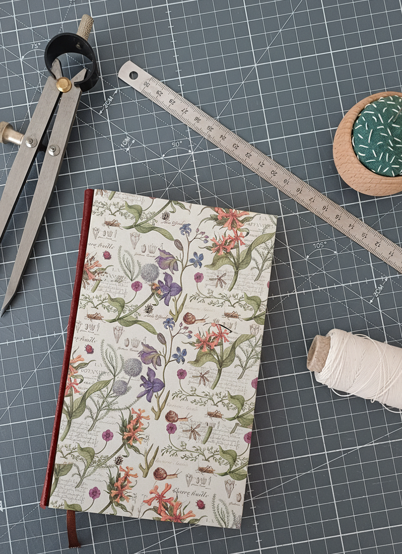 Cette couverture s’inspire des planches botaniques anciennes, ornée de fleurs colorées, feuillages délicats et petites illustrations naturalistes. Son design raffiné et poétique lui donne un charme intemporel, idéal pour un carnet inspirant et élégant.
